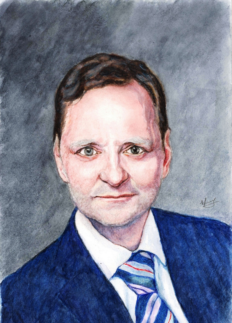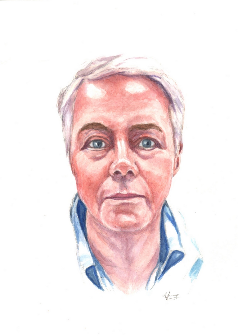 69 лет. Москва, Россия. Кандидат наук, изобретатель, менеджер по международным закупкам, писатель и художник. Техника бумага, акварель, карандаш. Портреты в серии «Против» начал рисовать в 2020 году. Ведёт свой блог в интернет, где показывает портреты разных людей. Открыто высказывается против войны. Пишет портреты украинцев, известных личностей, политзаключённых. Когда пришёл в проект 120 ПЗК, оказалось, что у него уже есть портреты множества наших подопечных.